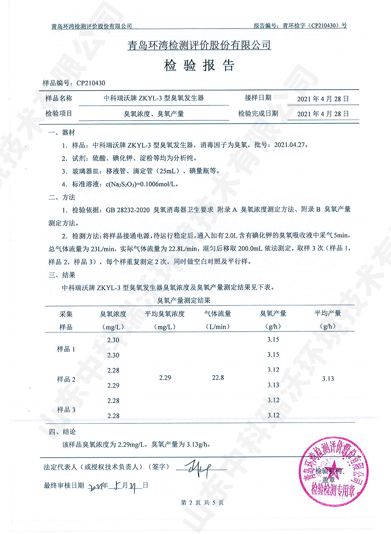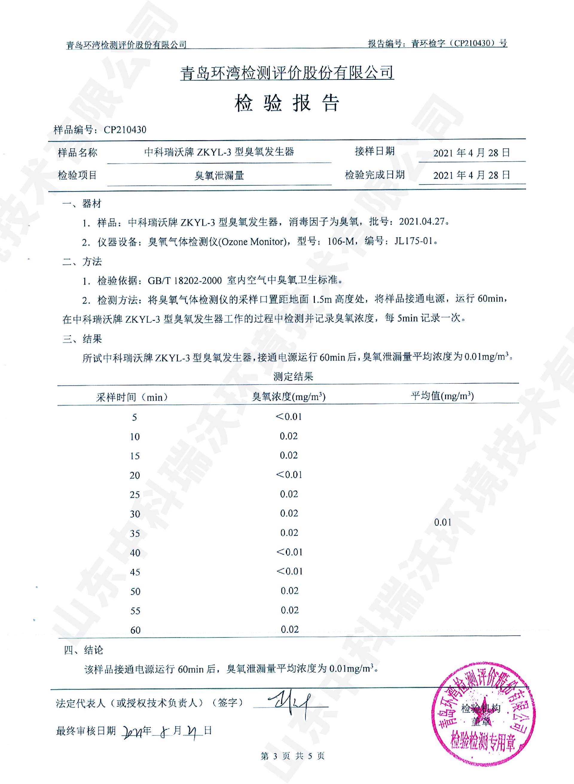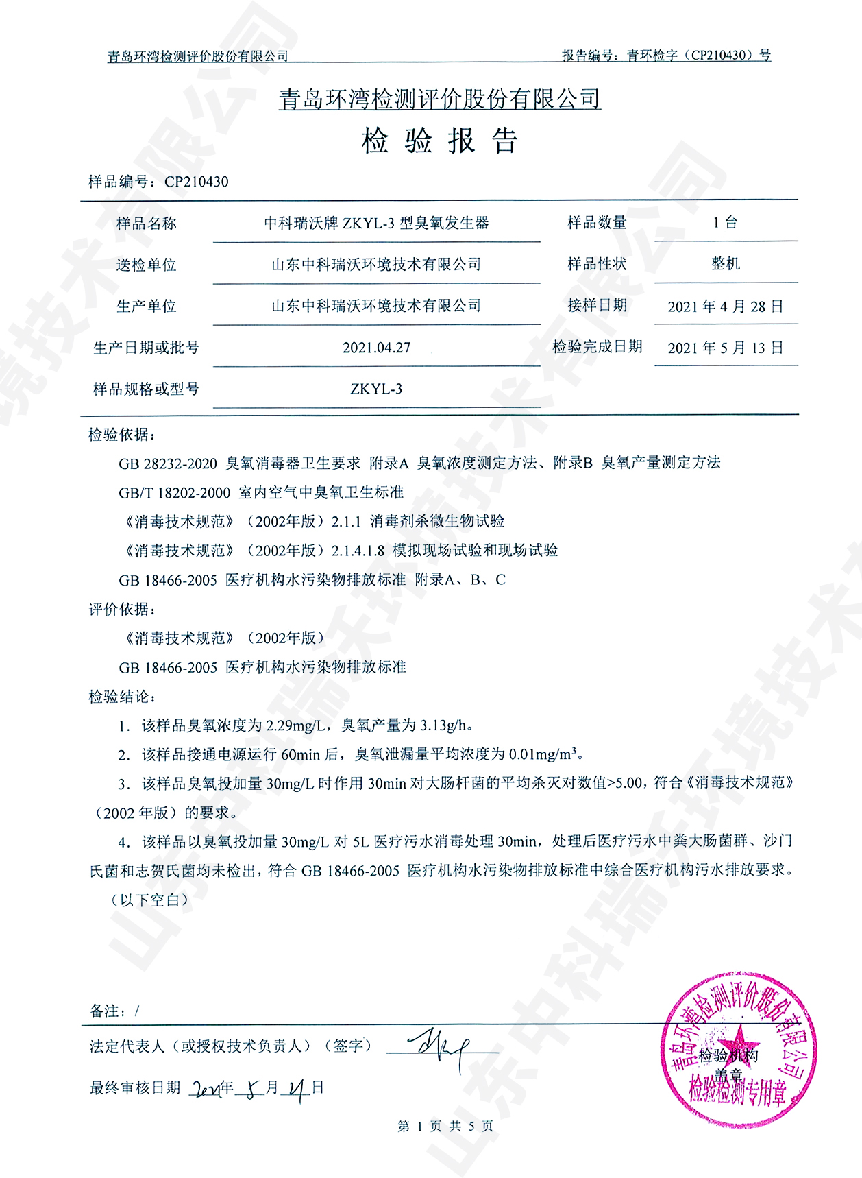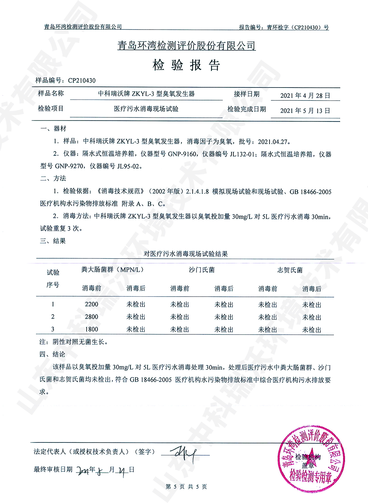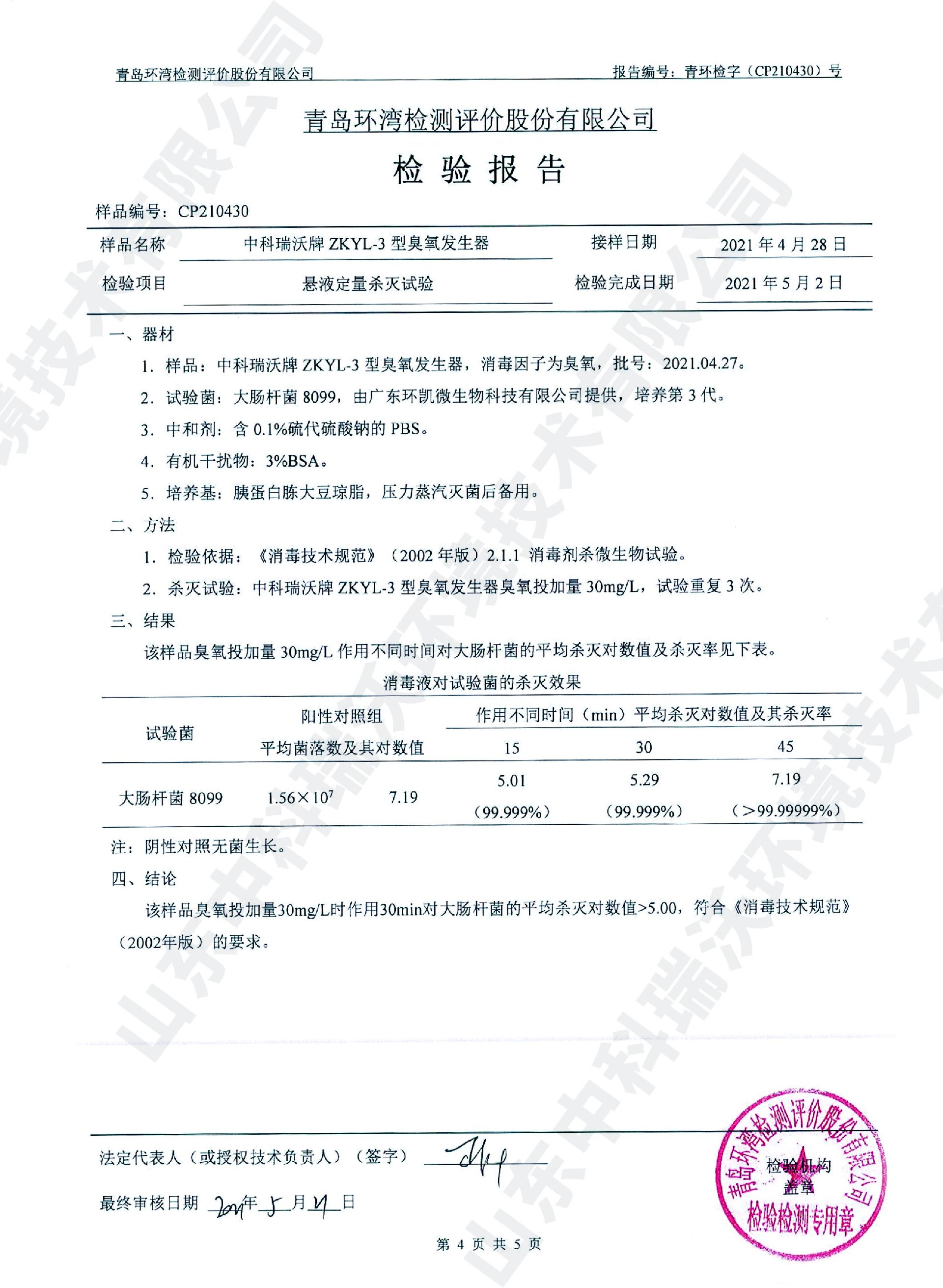 醫(yī)療污水處理設(shè)備檢測報告~臭氧消毒